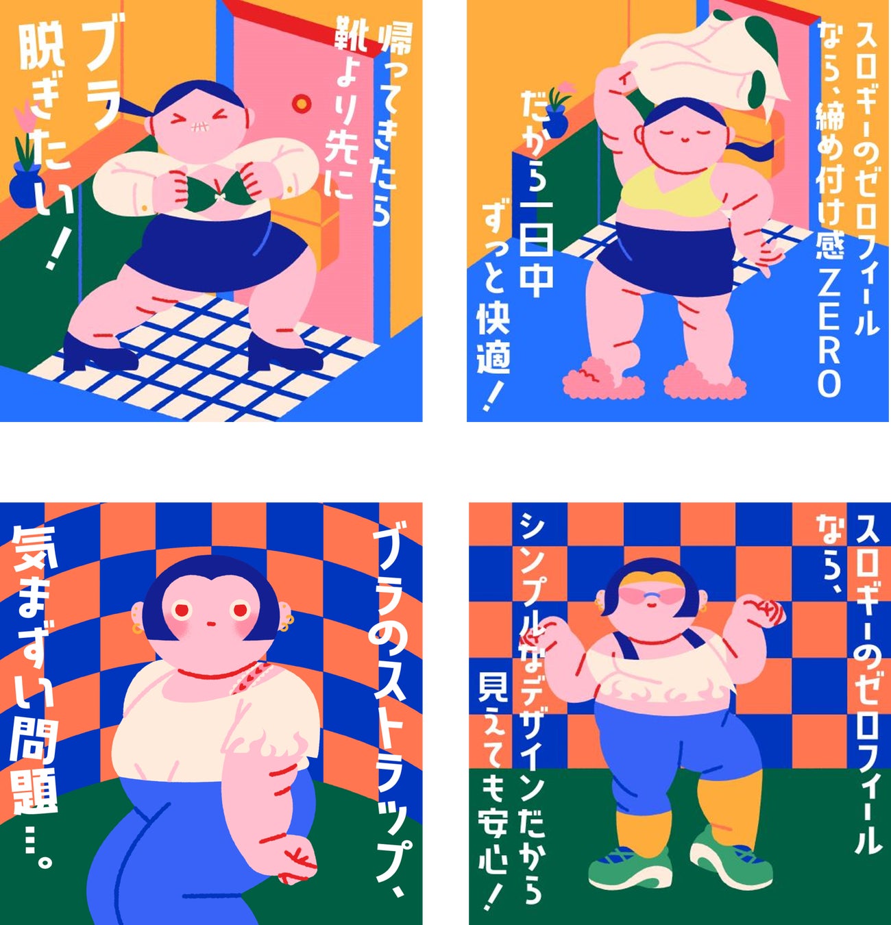 「胸から自由を手に入れて!ブラのムムム」キャンペーン特設サイトでは前田豆コさん書き下ろしの全6種類のイラストを公開中。「ワイヤーがかゆい!」「ブラがシャツから透ける…。」多くの方が一度は経験があるであろう、「ムムム」と思ってしまう悩みをスロギーゼロフィールが解決します。同日にリニューアルして発売されたsloggi ZERO FeelⓇ BraletteをはじめとしたゼロフィールⓇシリーズを着用した女性の日常を、前田豆コさんがキュート&ポップに表現。ついついうなずいてしまう、「#ブラのムムム」とその解決策はぜひスロギー公式サイトからチェックしてください。