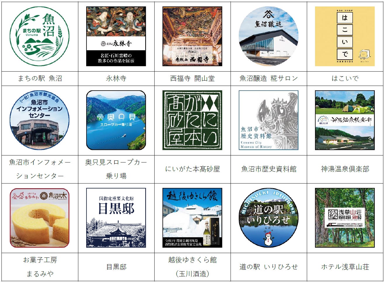 ※「永林寺」「西福寺 開山堂」「魚沼市歴史資料館」「目黒邸」のエキタグは有料エリアにあるため、スタンプ取得には入館料が必要です。