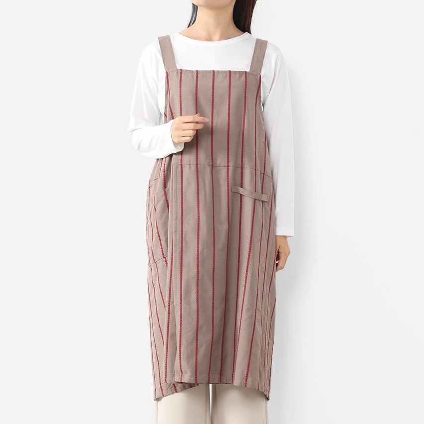 「エプロンを着るのが面倒」「肩が凝る」「動きづらい」そんな日常の声に応えて生まれたのがこのエプロン。頭からかぶるだけで着脱できる設計で、忙しい朝や来客時にもサッと身に着けられます。バッククロス仕様で肩に負担がかかりにくく、動きやすさと美しいシルエットを両立。濡れた手を拭くタオルも掛けられるループ付きで、使い勝手の良さが光る一枚です。