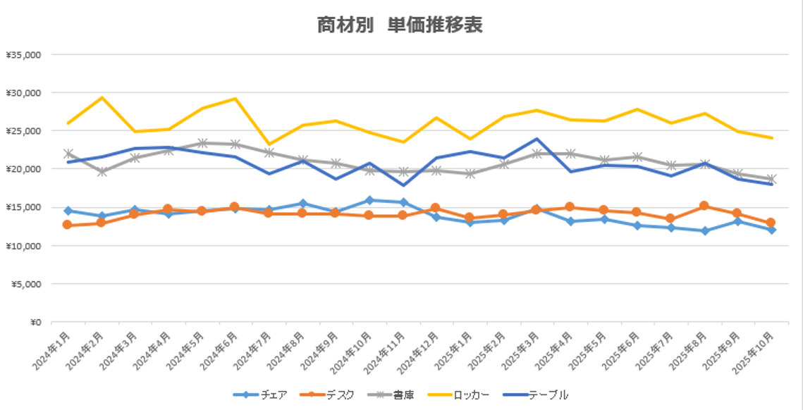 【独自調査:56】当社取扱の中古オフィス家具の傾向や動向等を示す指数をとりまとめました。オフィスバスターズが、独自にまとめた '25年10月度の「中古オフィス家具指数」を発表します。