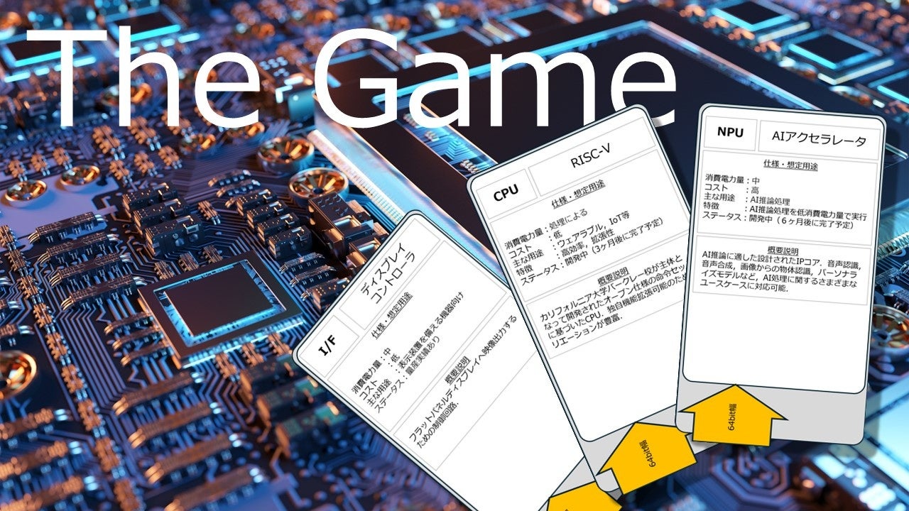 そこで半導体設計の人材育成強化のため、日本IBMは、システム・オン・チップ(SoC)設計(*1)を学べるカードゲーム「The Game」を開発しました。「The Game」は、半導体の用途、要件、予算などの与えられた制約の中で、性能とコストを考慮しながら、半導体回路の構成要素であるIPコアを選択して組み合わせ、実践的に全体回路を設計するゲームです。コンポーネントの説明も記載されており、わかりやすいカードゲームを通じて、文系・理系問わず、中学生から現場で役立つ半導体設計を学習することができます。