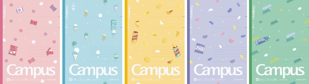 限定キャンパスノート <スナックモチーフ> 5色パック(ドット入り罫線)