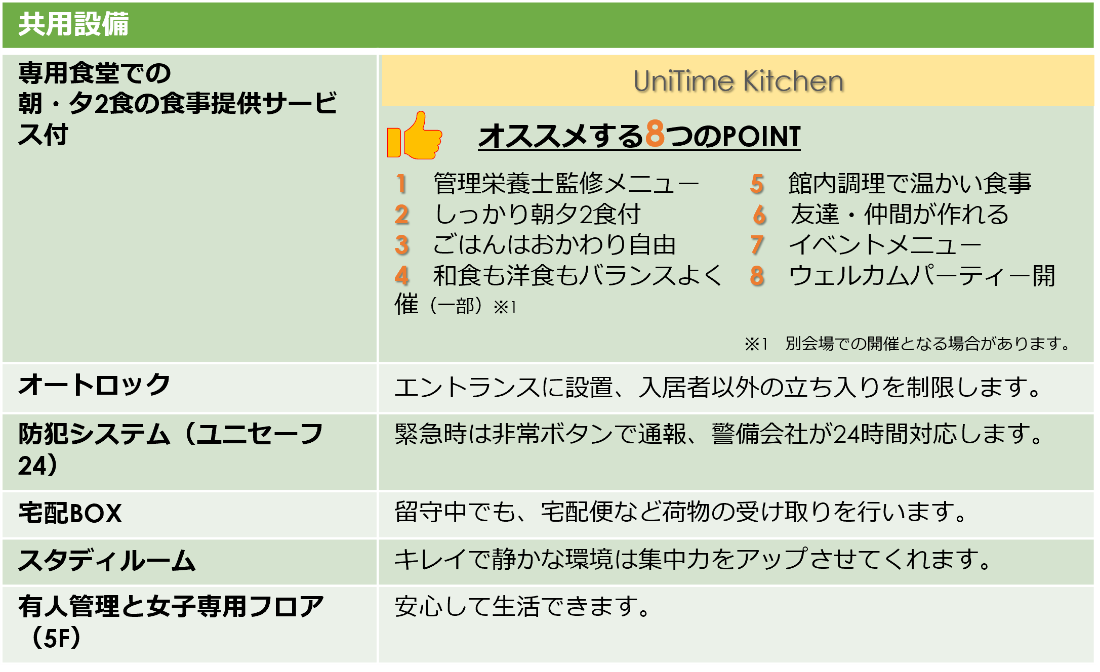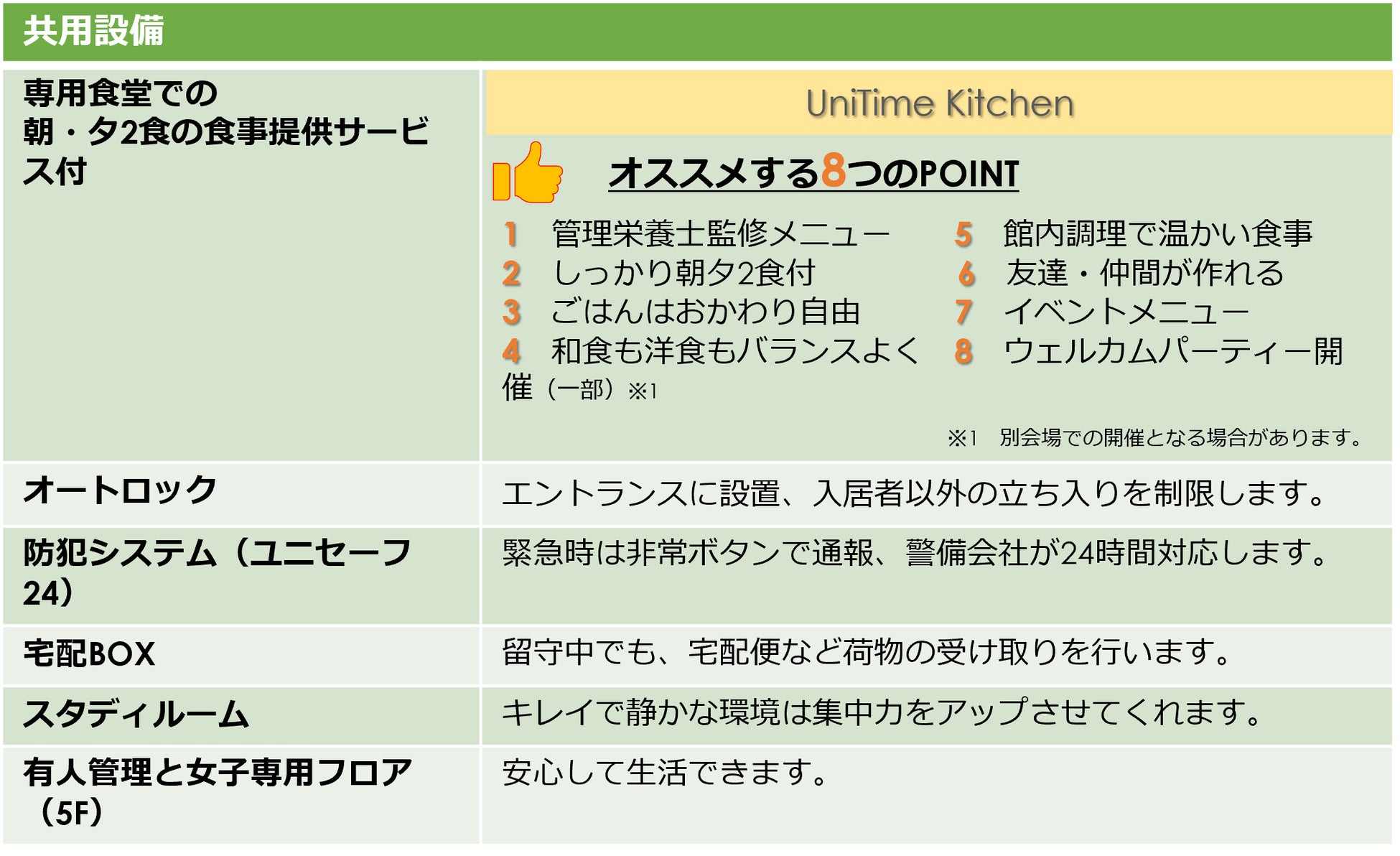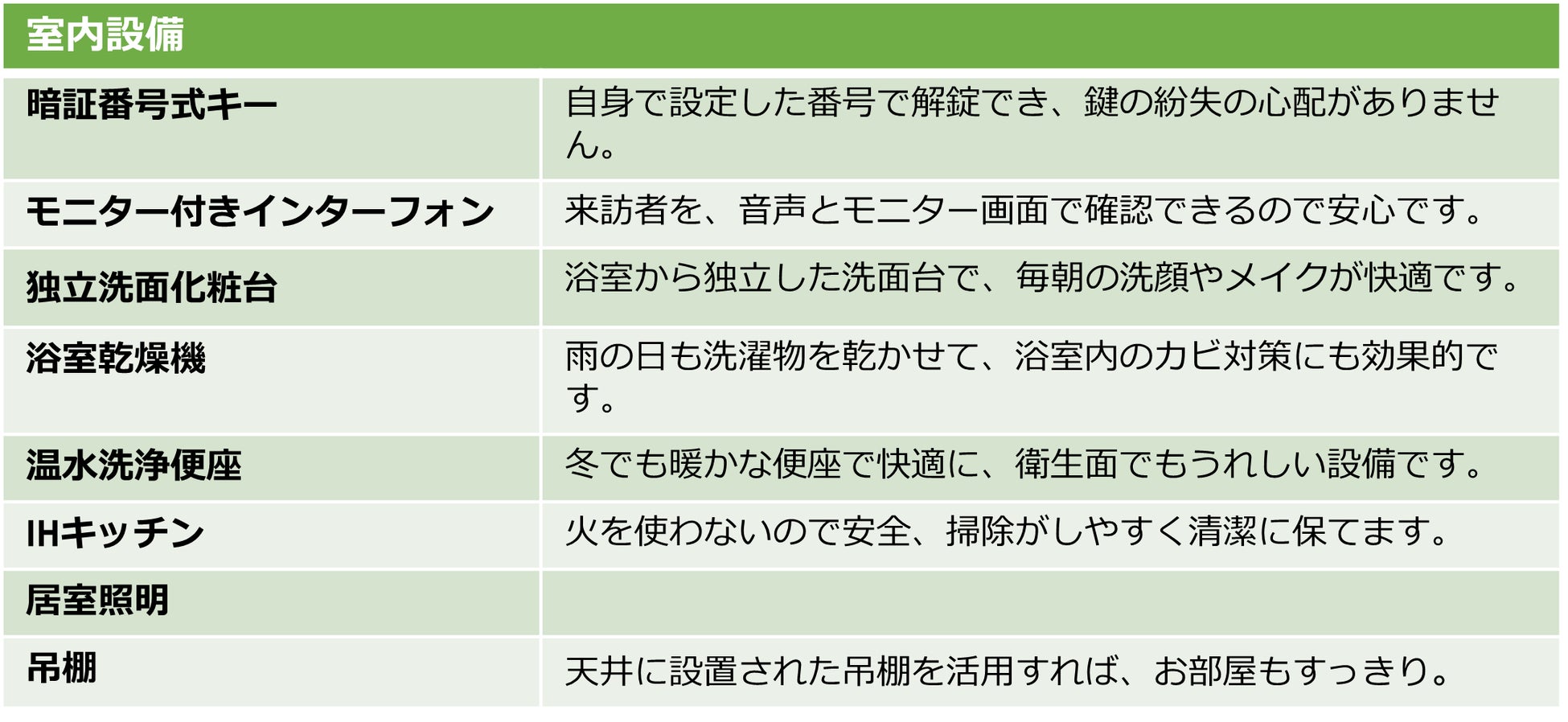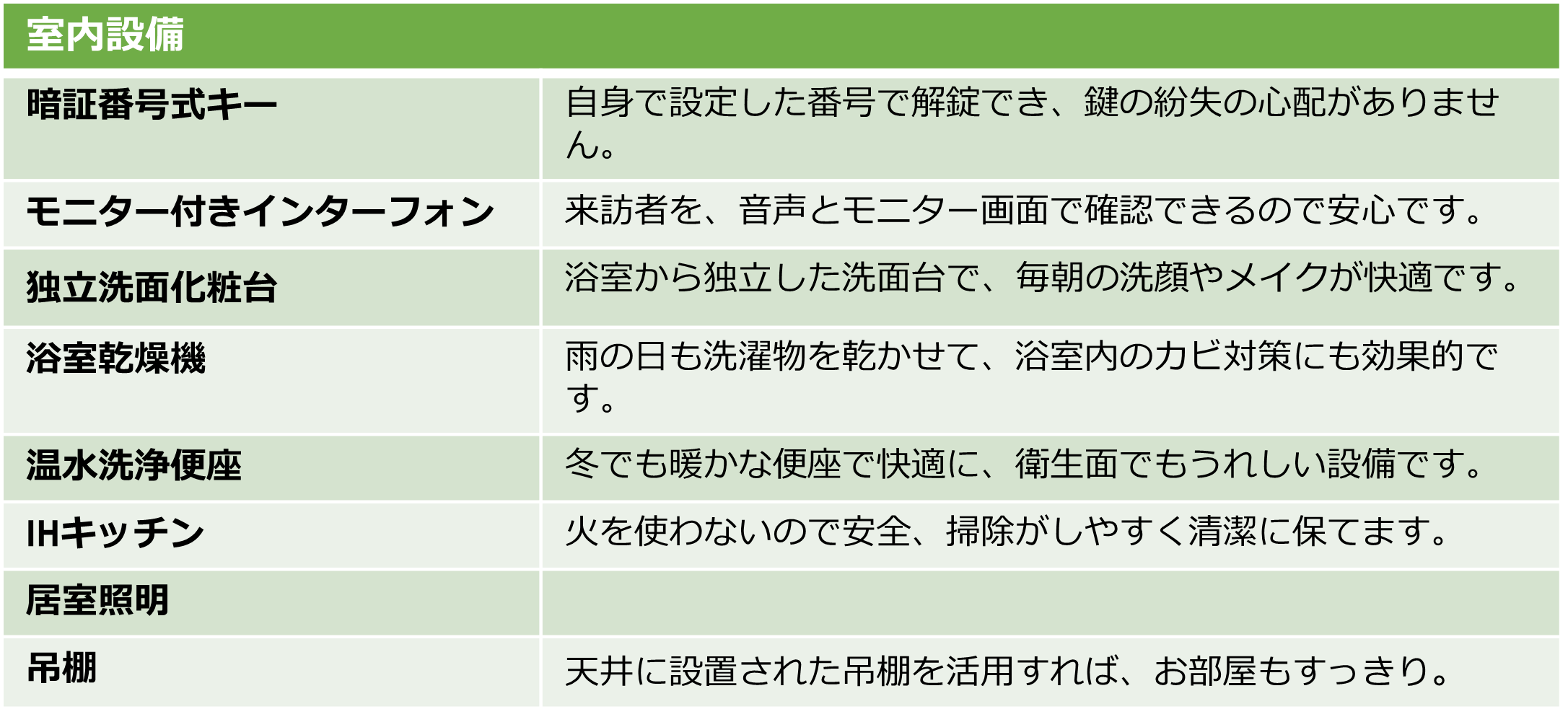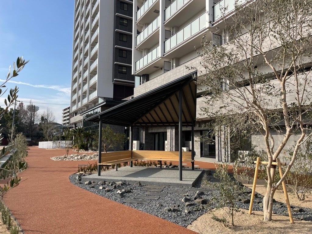 • 充実の共用部分(多目的室、防音室、ゲストルーム、シェアキッチン、コワーキングラウンジを完備) • 敷地内に地域住民とのつながりを可能にする緑あふれるメインストリート(名称:学南ストリート)を配置(ストリート内にドッグラン、東屋完備)
