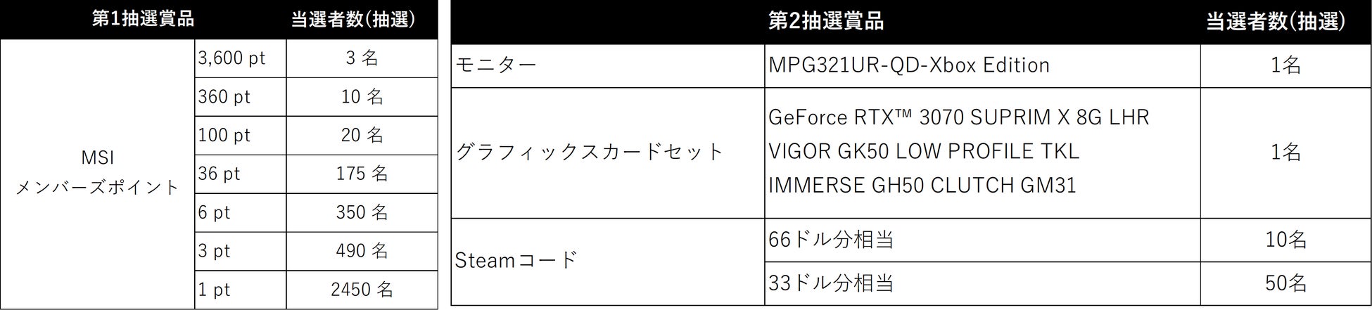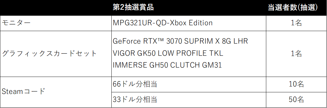 第2抽選:ゲーミングモニター、ゲーミングセット、Steamコードなどが当たります。