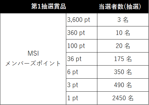 対象製品をMSIメンバーセンターに登録すると、抽選でそれぞれ以下の特典がもらえます。