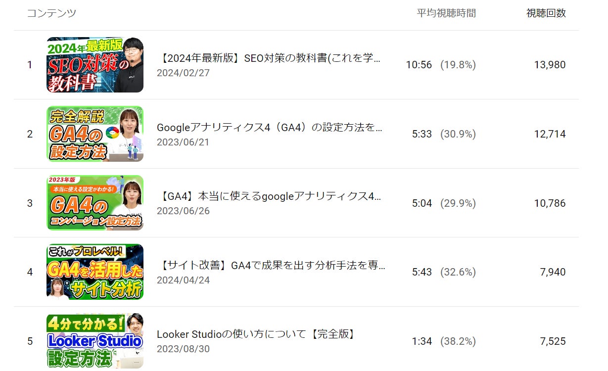 ■YouTube「ナイルTV/SEO相談室」動画再生回数ランキング
