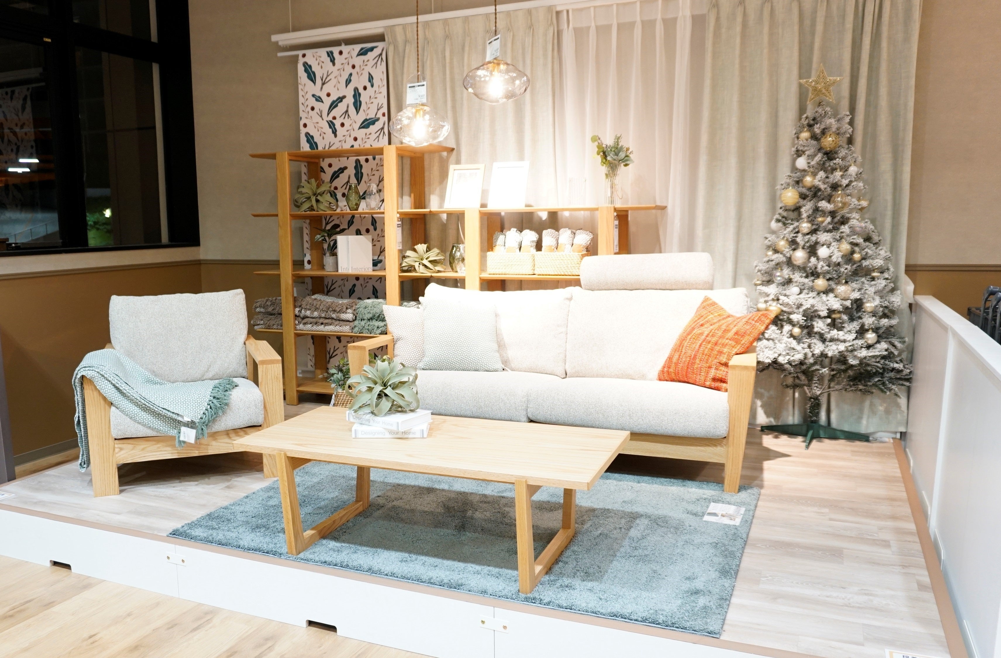 スタイル別のコーディネート提案売場では、家具のテイストに合わせたクッションカバー、スローケット、ラグなどのインテリア用品で演出し、その場でお客様がコーディネートアイテムを選べるように近くに陳列しています。これにより「理想の部屋」をお客様自身で楽に実現することが可能となります。