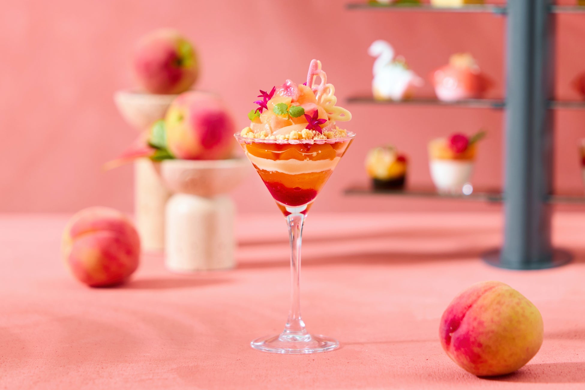 フレッシュの桃を使った“ピーチパルフェ”が主役 桃づくしアフタヌーンティー