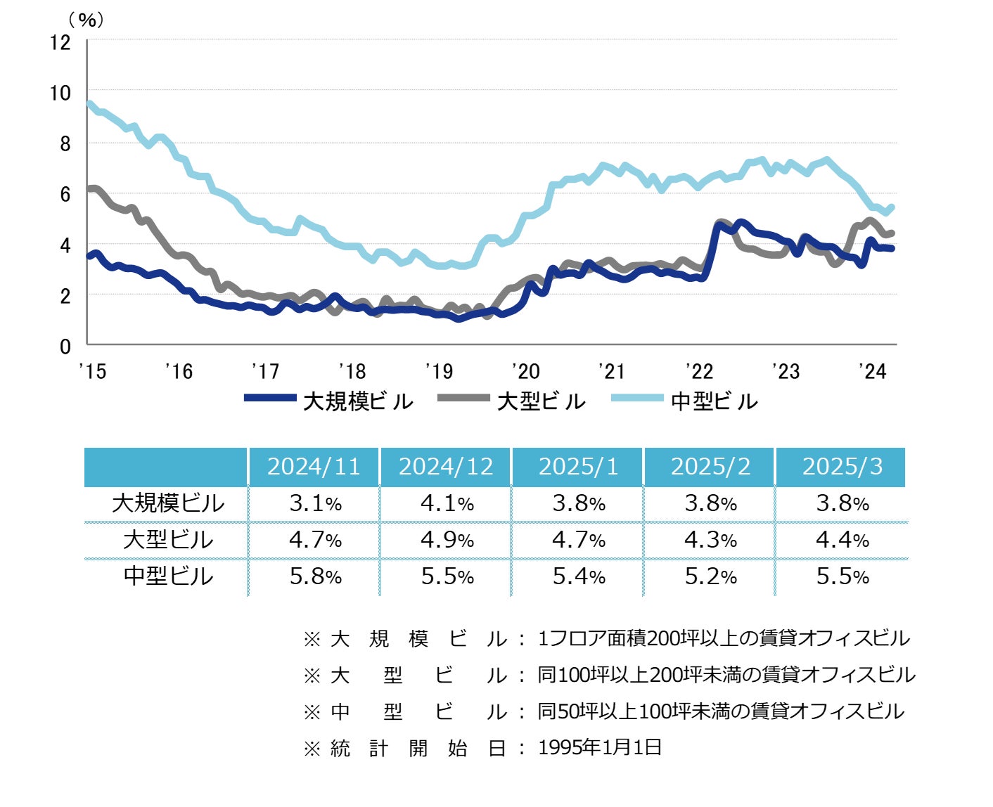 <空室率の推移(6大都市 大規模ビル)>