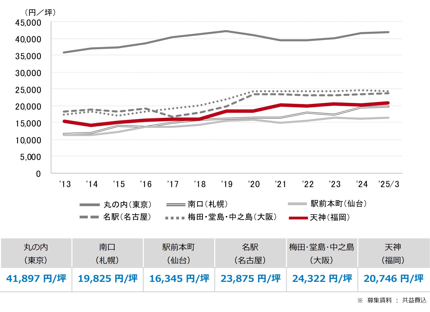 <募集賃料の推移(6大都市 大規模ビル・主要駅前地区)>