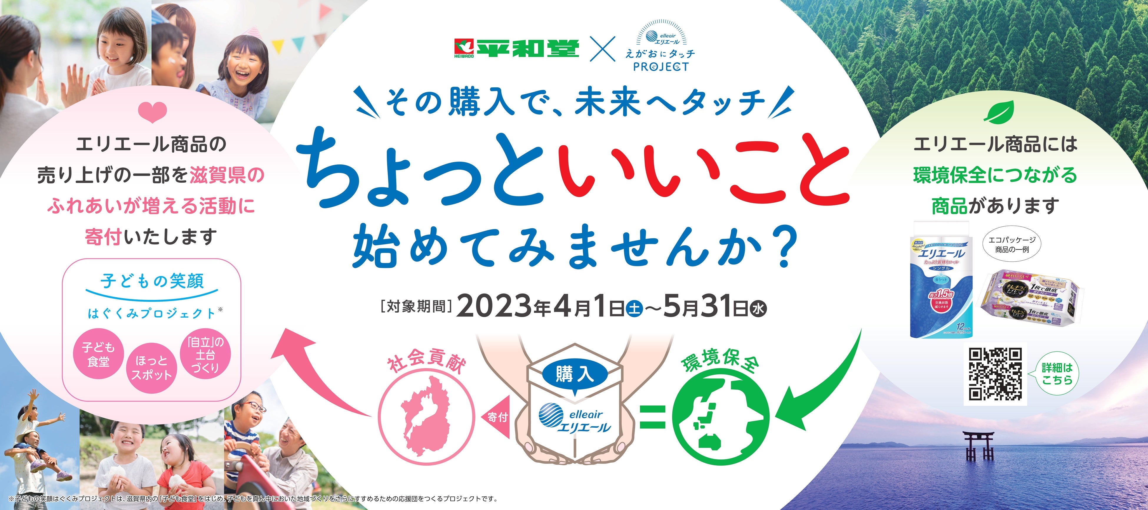 -エリエール えがおにタッチPROJECT- 平和堂でのエリエール商品の売り上げの一部を滋賀県へ寄付