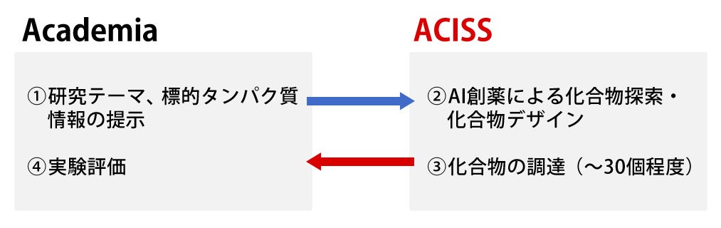本プログラム(IAAP)は、AI創薬による化合物探索・化合物のデザインおよび化合物の提供を行う、アカデミアとの共同研究プログラムです。
