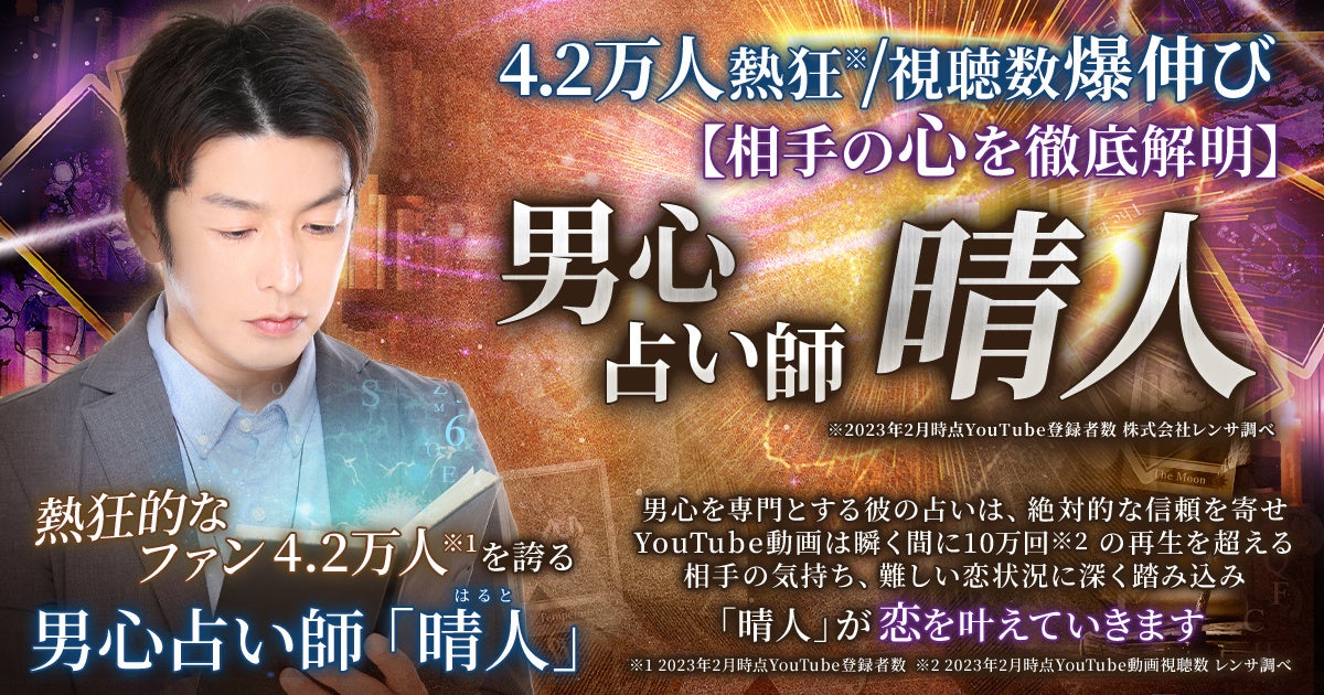 ■「4.2万人熱狂※/視聴数爆伸び【相手の心を徹底解明】男心占い師◆晴人」とは