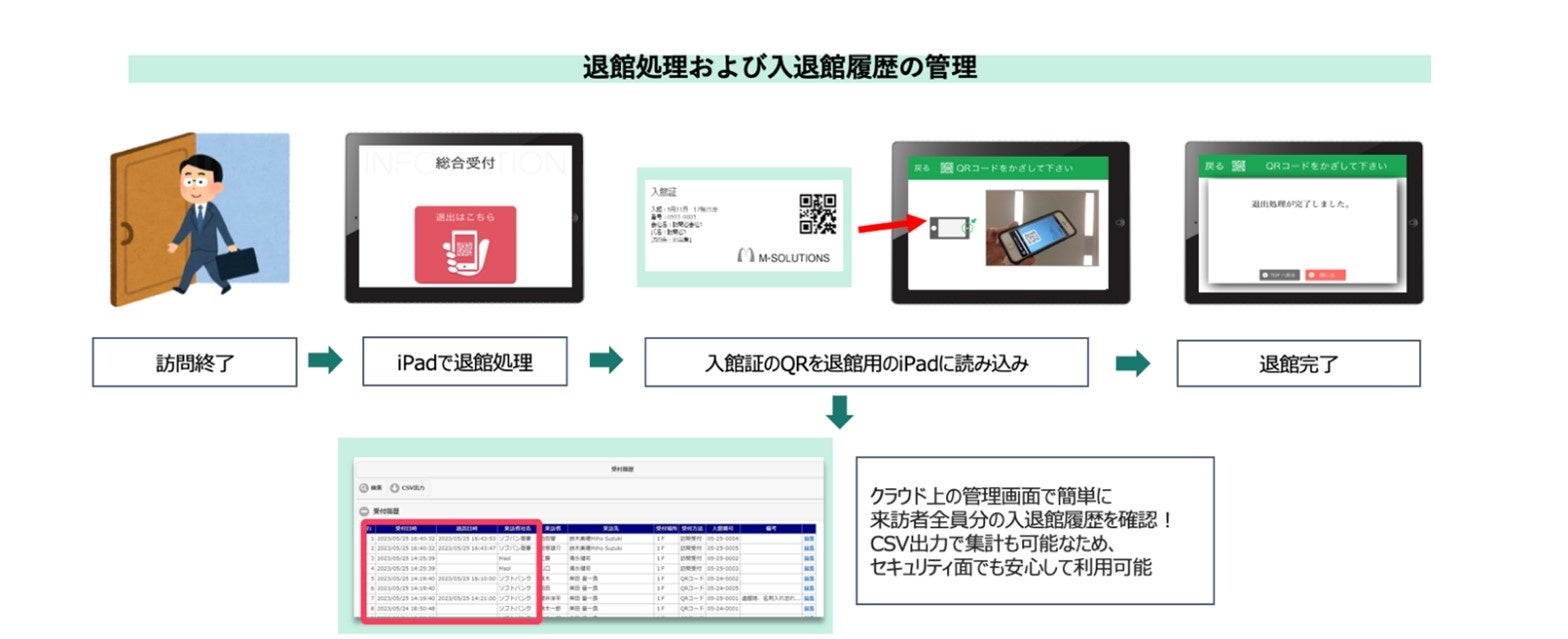退館時には入館証のQRコードをiPadで読み込むだけで簡単に退館処理ができます。