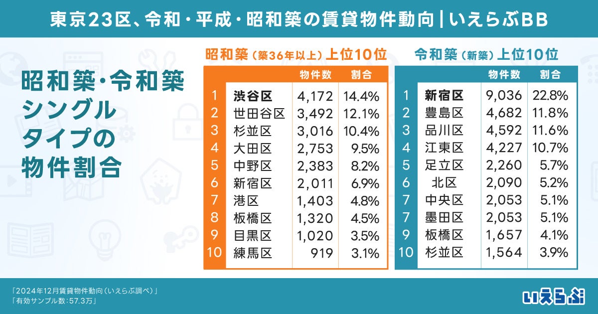 東京23区、令和・平成・昭和築の賃貸物件動向を分析!|いえらぶ調べ