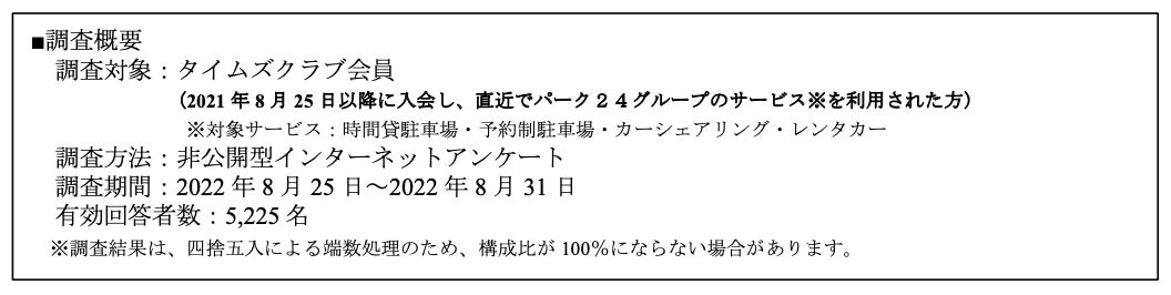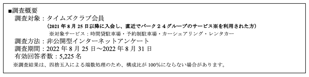 なお、本アンケートは、駐車場やカーシェア、レンタカー等のクルマに関わるサービスを利用した方々を対象としたものです。