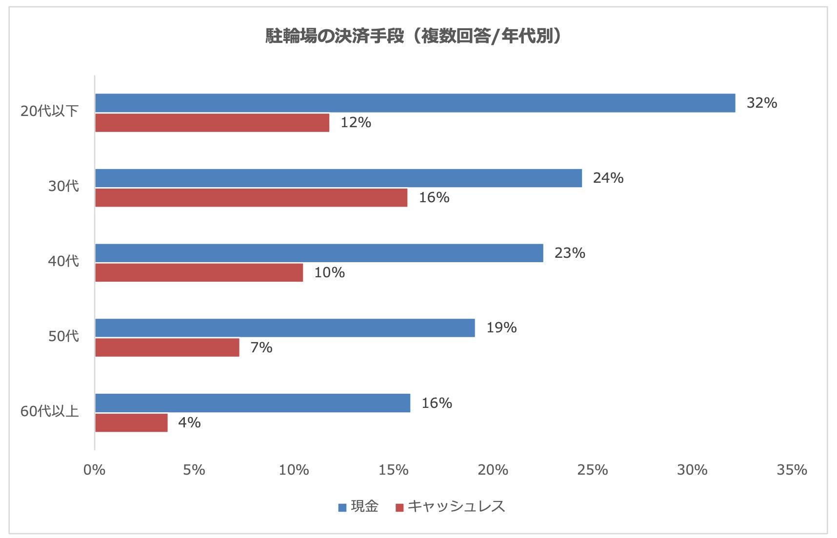 ① 「駐車場」と「駐輪場」の現金決済比率がキャッシュレスを上回る