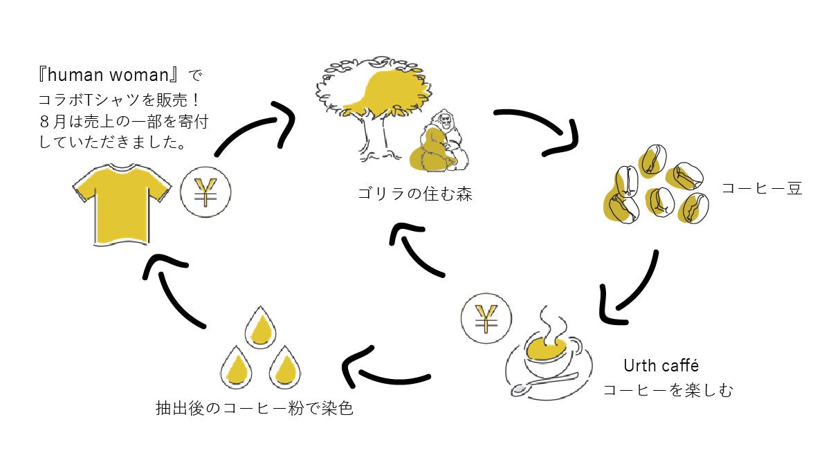 8月は、human womanとコラボしたコーヒー染め商品の売上の一部を寄付し、9月はUrth Cafféがコーヒー1杯につき10円を寄付し、こちらの活動の支援をいたします。