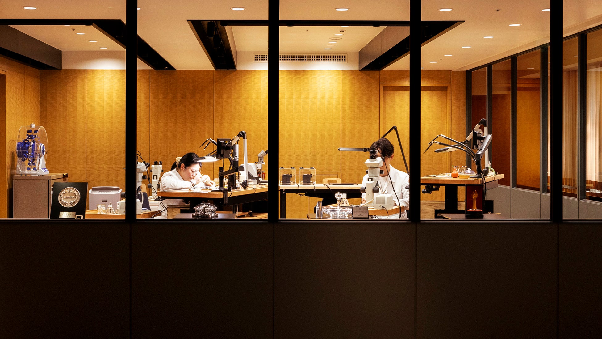 本作は、創業の地である銀座の工房「アトリエ銀座」に所属する最高の機械式時計職人と設計者、デザイナーたちにより誕生しました。このアトリエでは創業者 服部金太郎の「良品は必ず需要者の愛顧を得る」という強い信念を引き継ぎ、比類ない時計作りを目指します。本作のムーブメントには、「アトリエ銀座」で生み出されたことの証として、そのロゴマークが刻印されています。