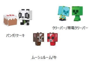 うらがえすと変わる超展開フィギュアです!クリーパーは帯電クリーパーに、パンダはケーキに、ムーシュルームは牛に超展開します!