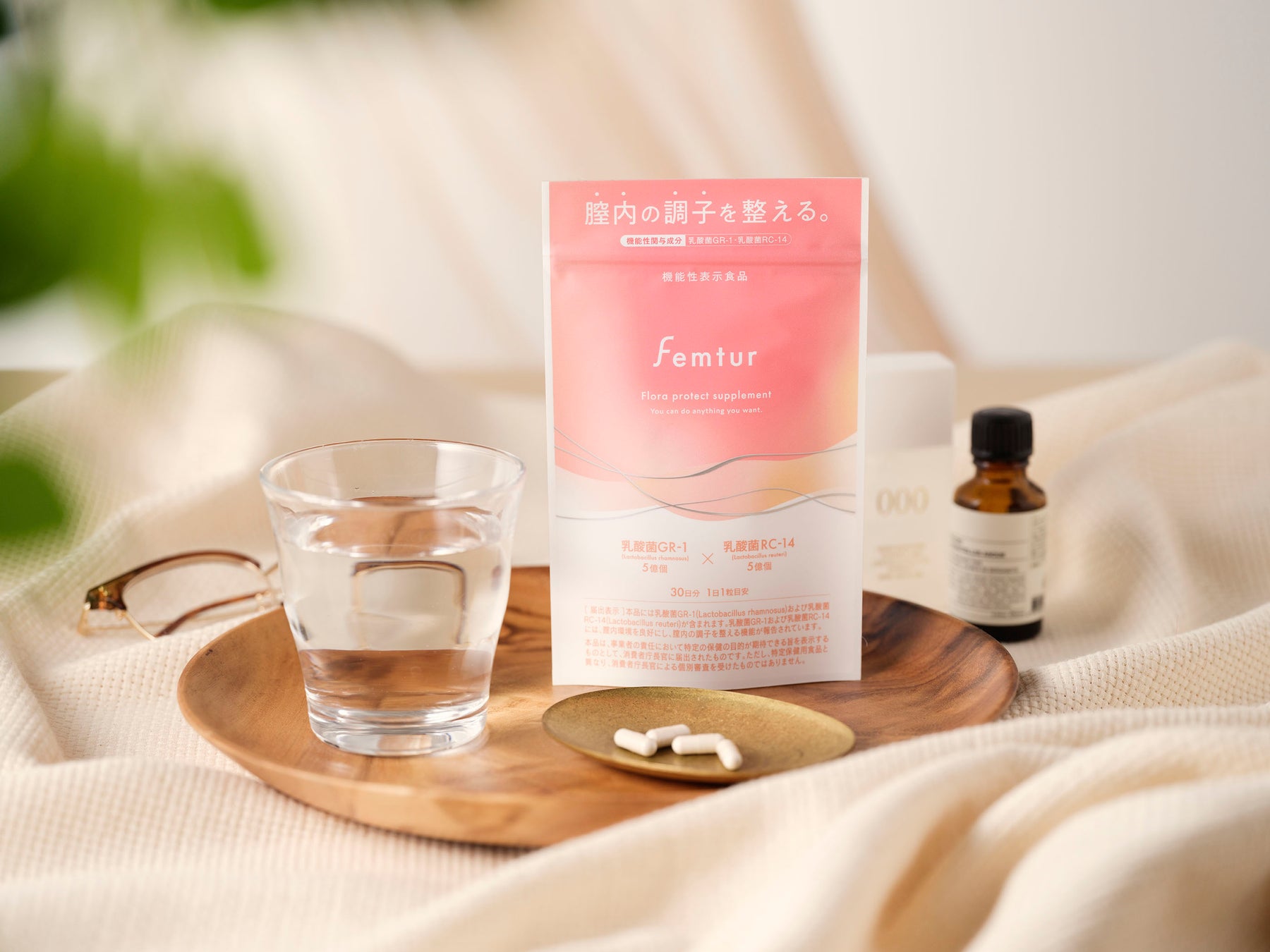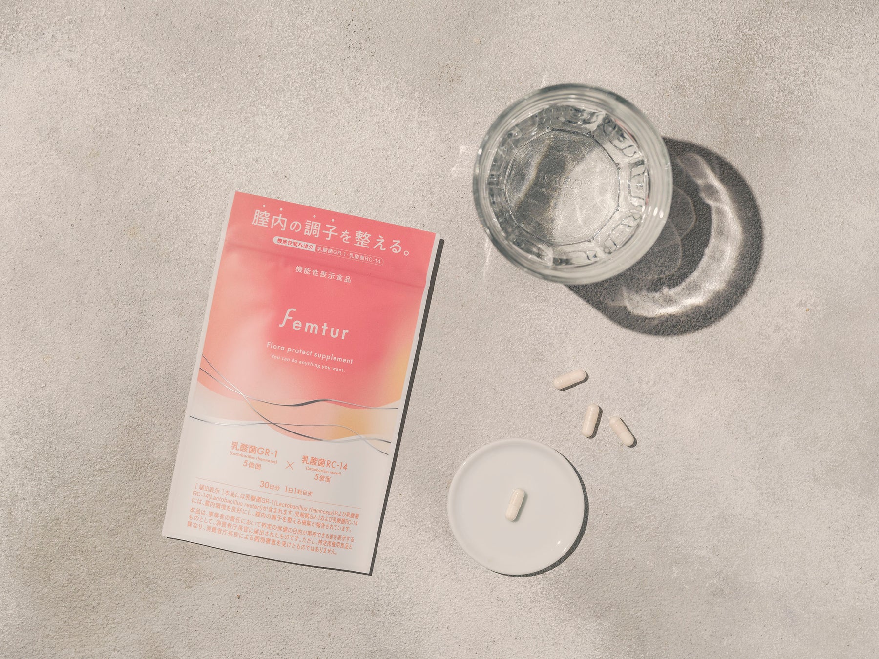 フェムチャーは、女性が生涯をともにする女性ホルモンの変化に着目し、更年期・アフター更年期世代のデリケートゾーンの悩みに寄り添う商品やサービスを展開する「腟のエイジングケアブランド」です。女性ホルモン(エストロゲン) の分泌が低下する更年期・アフター更年期の時期は、腟が乾燥や炎症を起こしやすく、性行為中やショーツ・おりものシートとの摩擦による痛み、かゆみ、においなど、トラブルを抱える女性も少なくありません。フェムチャーでは、 専用のウォッシュやオイルで腟の外側を保湿するケアだけでなく、内側からのケアにも着目し、腟内フローラを整えてトラブルの原因にアプローチするサプリメント「フェムチャー フローラプロテクトサプリ」を2024年3月に発売いたしました。