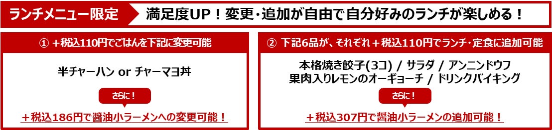 定食メニューが「中華満喫定食」にバージョンアップ!ランチオプションも拡大