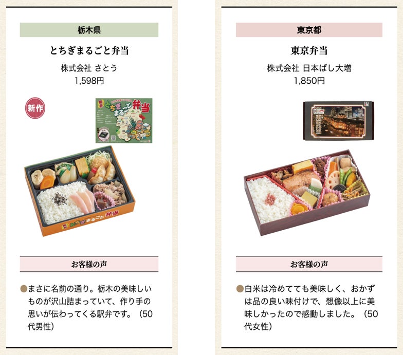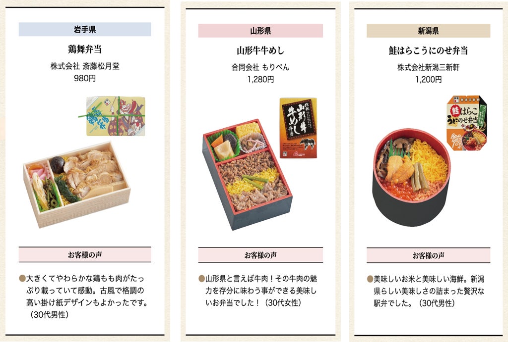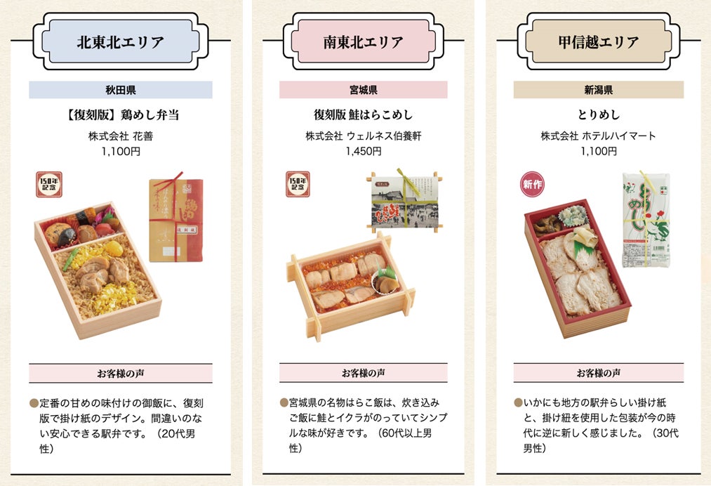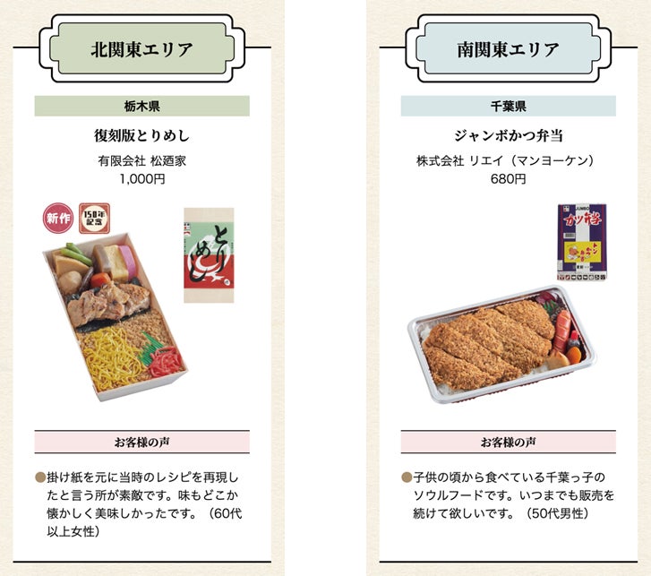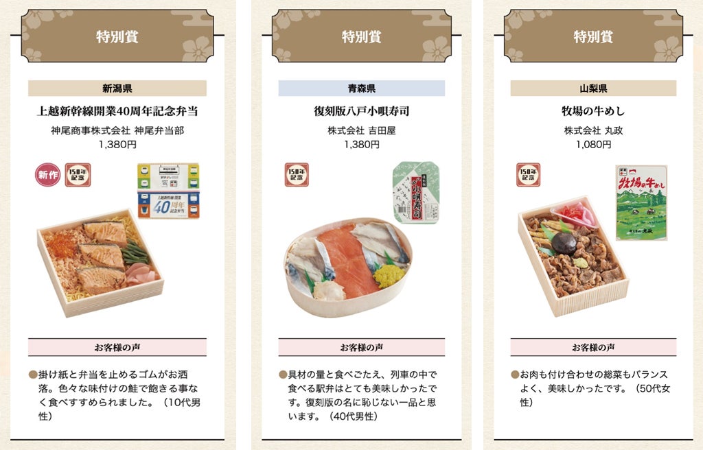 〇WEB投票において、「北東北部門」「南東北部門」「甲信越部門」「北関東部門」「南関東部門」のそれぞれのエリアの中で最も総合評価が高かった駅弁