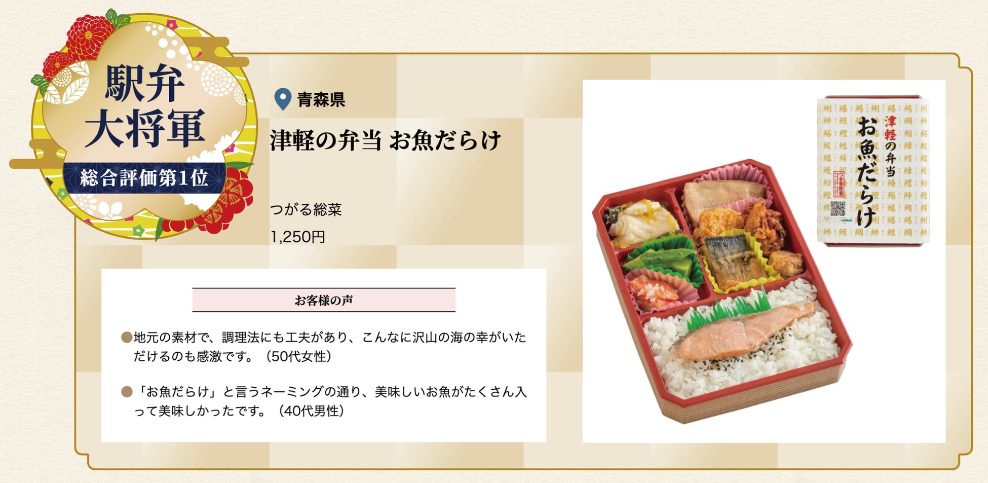 「駅弁味の陣2022」受賞駅弁が決定!~駅弁大将軍は青森県の「津軽の弁当 お魚だらけ」(つがる惣菜)~