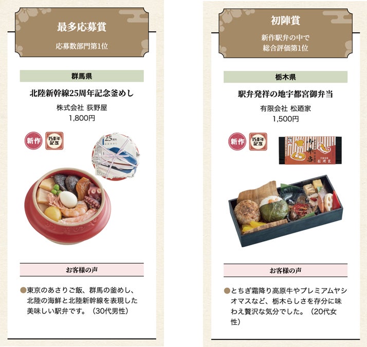 〇WEB投票において、JR東日本が選定した150年駅弁の中で総合評価が高かった駅弁