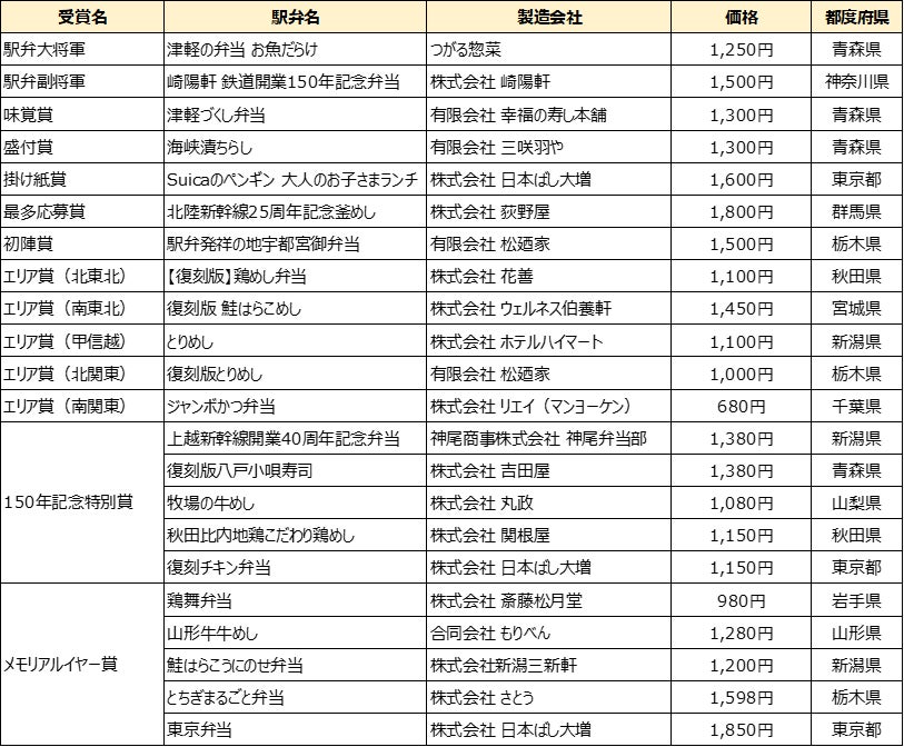 ■受賞駅弁一覧