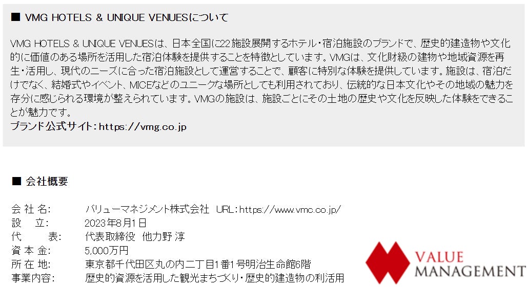バリューマネジメント株式会社(本社:東京都千代田区、代表:他力野 淳、以下、当社)は、当社が運営する分散型ホテル