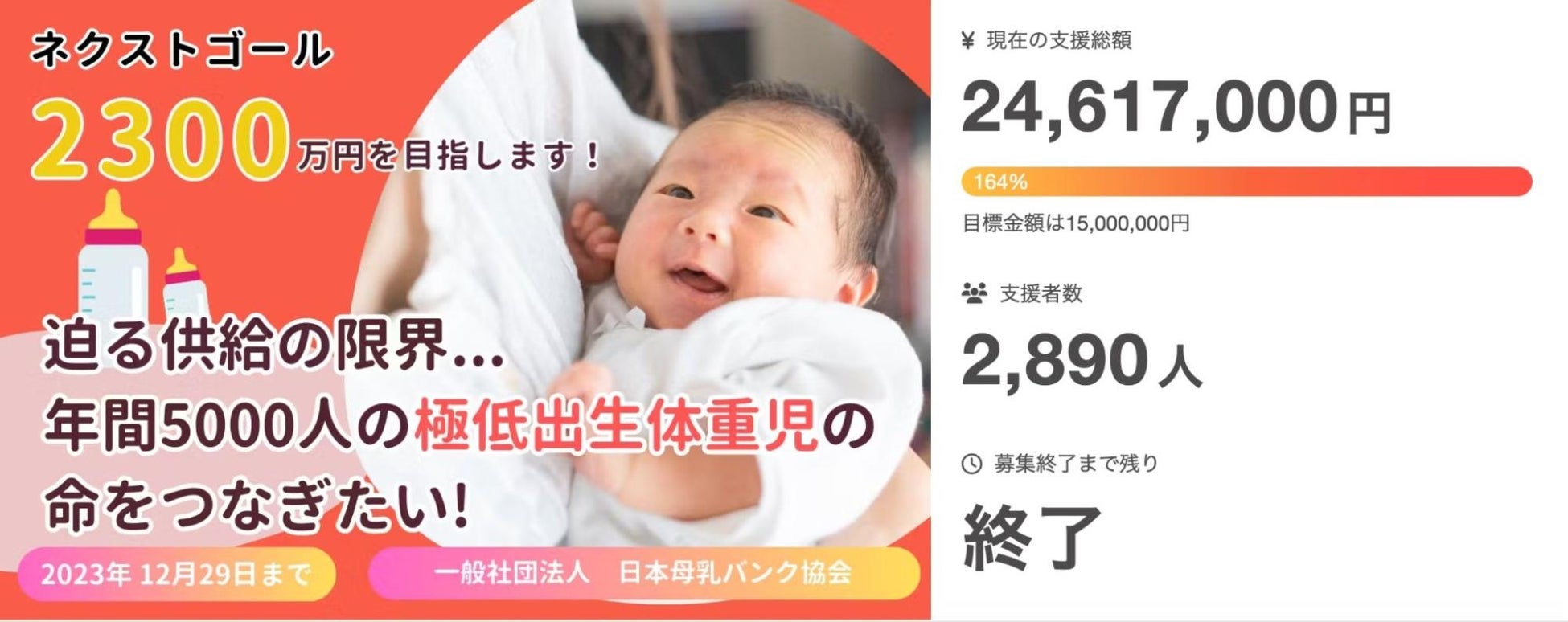タイトル:【母乳バンク】迫る供給の限界。年間5000人の極低出生体重児の命をつなぎたい!