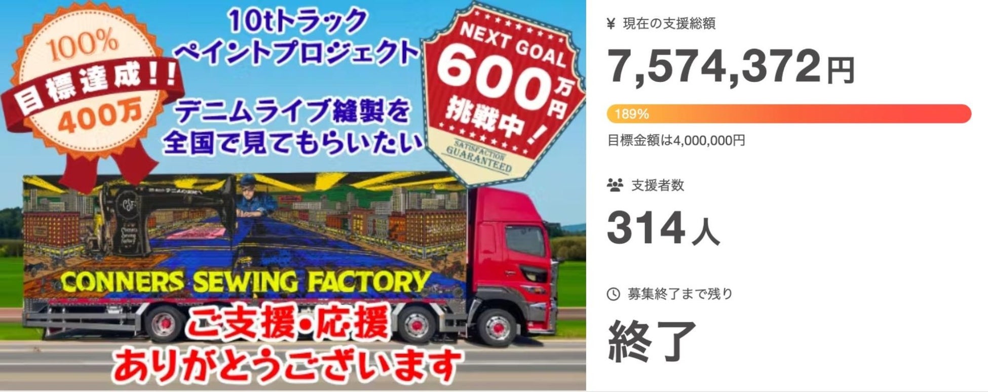 タイトル:デニム縫製ライブを全国へ!10tトラックで巡って縫製職と東近江の魅力を伝えたい!