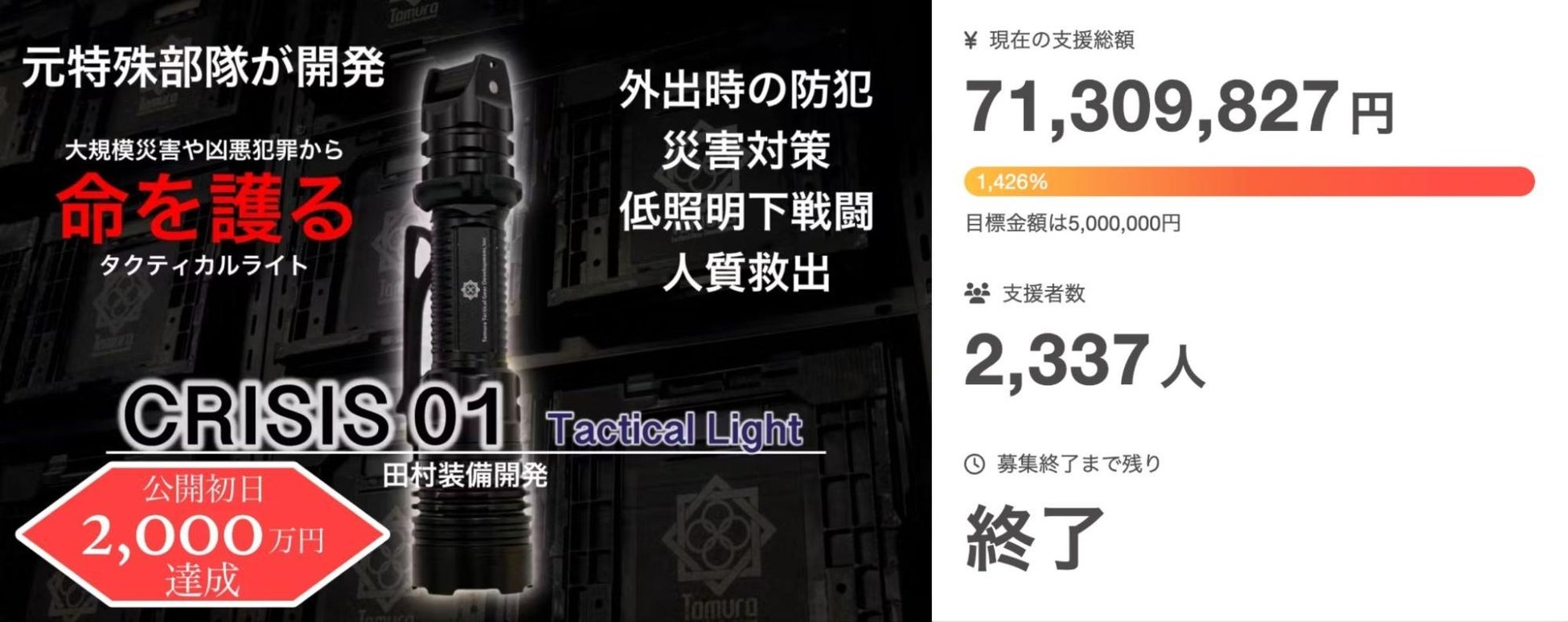 タイトル:元特殊部隊員が考案したタクティカルライト『CRISIS 01』