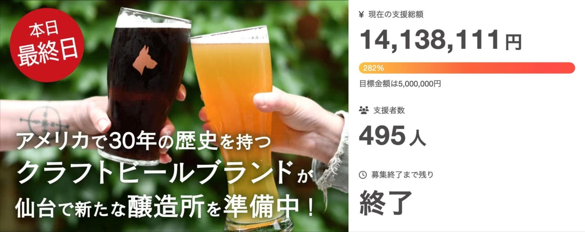 タイトル:【アメリカ発クラフトビール】こだわり抜いたラガービールで仙台の地を盛り上げたい!