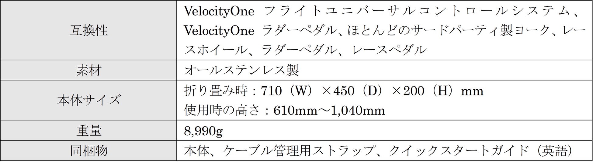 ・VelocityOneシリーズやサードパーティ製シミュレーション周辺機器に対応