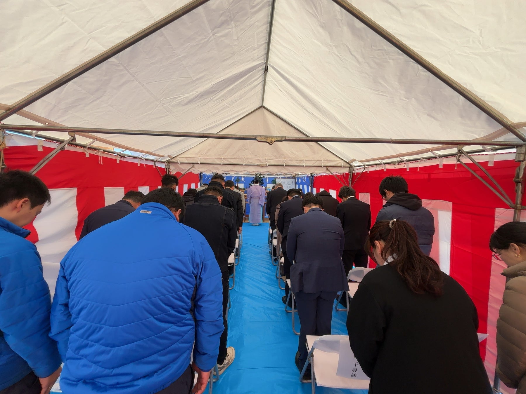 地鎮祭は、当実証を当社と共に実施する地元農業従事者の皆さまをはじめ、設計・施工会社の皆さま等総勢25名で執り行い、工事の安全を祈願しました。2号機では、地元の農業従事者の皆さまと一緒になって、農作物の生育に配慮しながら「農業」と「再生可能エネルギーによる発電」の両立を一層追求します。