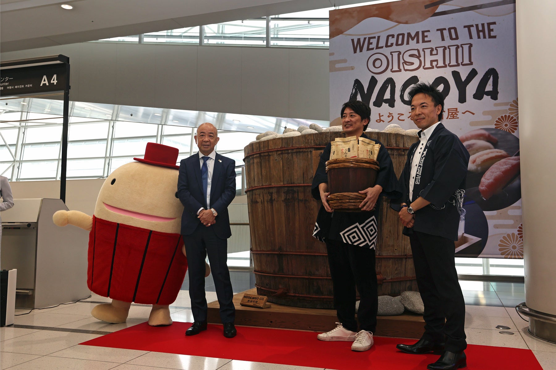 中部地域により多くの訪日外国人が訪れるよう、国際線の到着ロビーに愛知県を代表する味噌蔵のだみそ株式会社の味噌桶を設置し、中部地域の情報発信を行います。