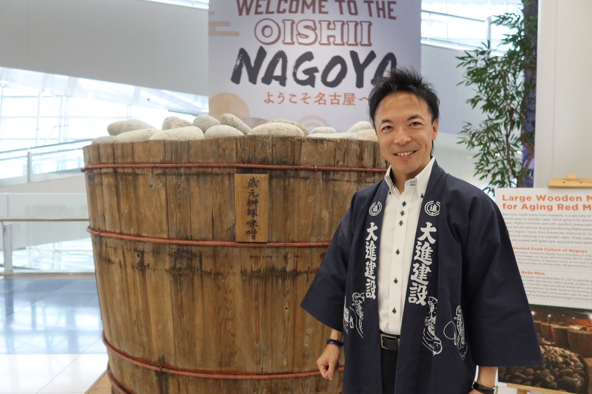 セントレアの開港20周年の場に立ち会えたこと、非常にうれしく思います。今回の味噌桶はそのまま空港に運搬したのではなく、一度解体し、部材に分けて搬入、空港内で組み立てるという新しい取り組みでした。空港に設置した味噌桶は実際に80年間味噌桶と使用し、10年間は蔵で保管していたもの。木桶にはリサイクルの流れがあり、味噌を仕込む前に酒や醤油など愛知県の醸造文化の食べ物を熟成させていた容器でもあり、その後、のだみそ株式会社で味噌桶として使用していました。今回、空港内で味噌桶を展示して、多くの方に見ていただけるようになり、外国の方に愛知県の発酵食文化、醸造文化を体験していただくという、新しい役割を与えていただけたこと、大変うれしく思います。セントレアでも大切に展示していただけるとありがたいです。