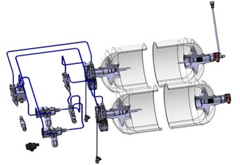 上記の高圧水素タンク用バルブとFCEV向け減圧弁を活用した、高圧水素貯蔵システムのイメージモデルを国内初展示いたします。