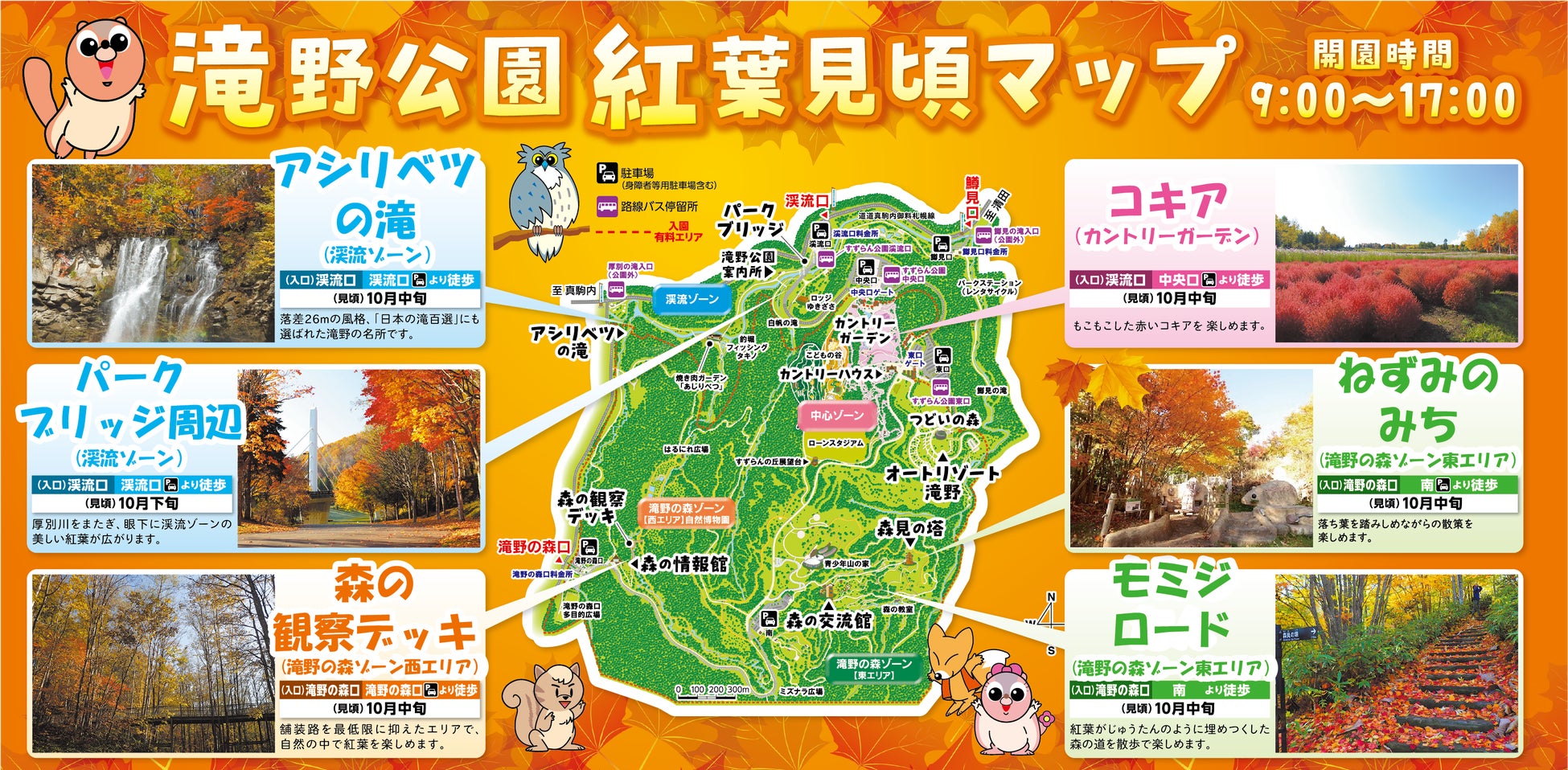 国営滝野すずらん丘陵公園(札幌市南区滝野247)では、紅葉の時期に合わせて「たきの紅葉まつり」を開催しております。10/21現在、園内の木々が紅葉の見頃を迎えています。