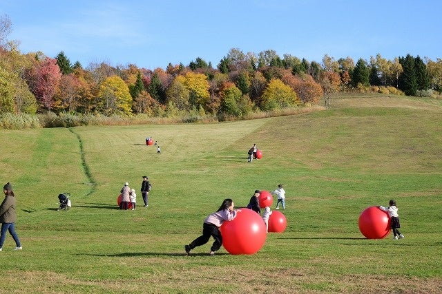 この時期はびっくりボールの赤色も相まって、カラフルな秋風景をご覧いただけます。