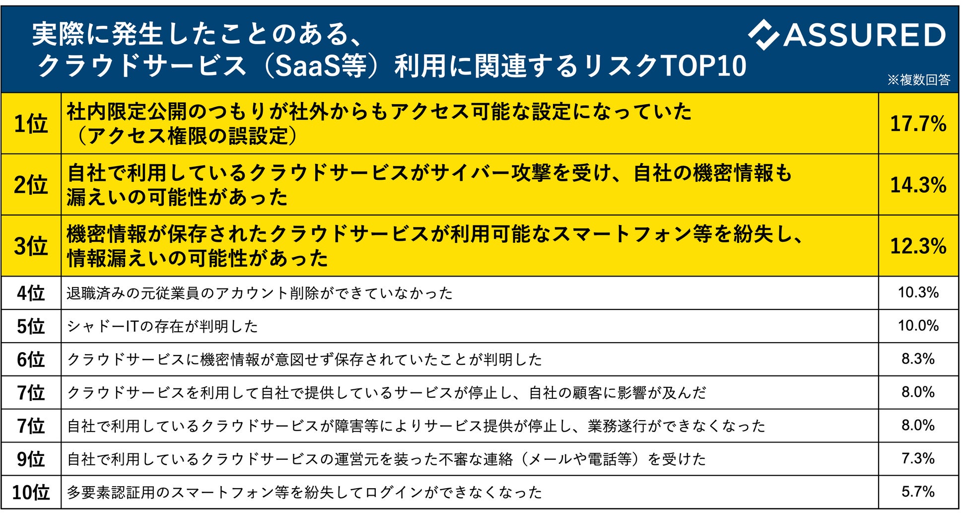 大手企業の情シスが遭遇した、SaaS利用関連のリスクTOP10(セキュリティ評価プラットフォーム「Assured」発表)