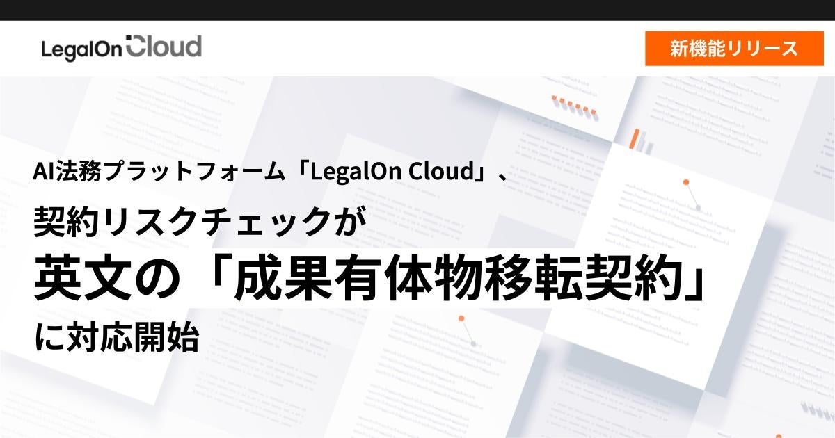 株式会社LegalOn Technologies(本社:東京都渋谷区 代表取締役 執行役員・CEO:角田 望)が提供する、AI法務プラットフォーム「LegalOn Cloud」(https://www.legalon-cloud.com/ )にて、契約リスクチェック機能が英文の「成果有体物移転契約」に対応開始しました。これにより、英文の成果有体物移転契約書の審査にかかる労力を軽減します。