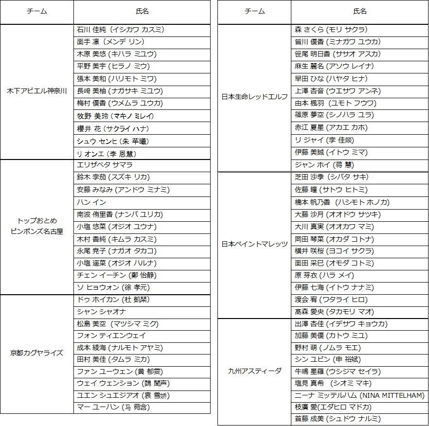 2022-2023シーズン 登録完了選手(2022年10月17日付)