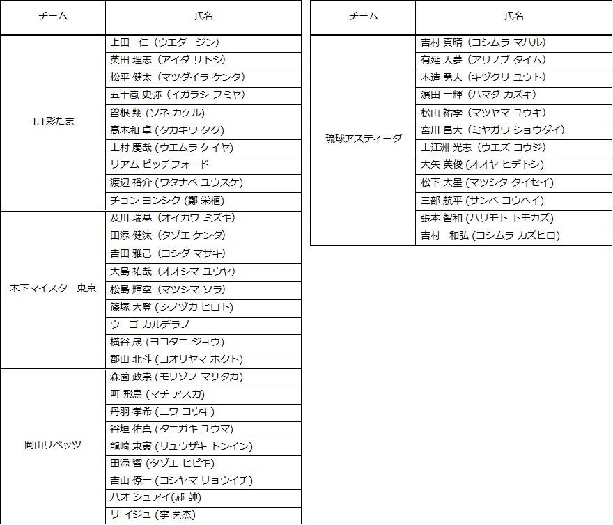 Tリーグでは、2022-2023シーズン 登録完了選手を以下の通りお知らせいたします。