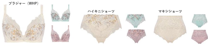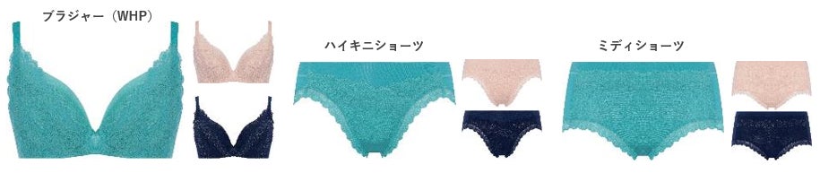 ブラジャー(WHP)は、カップ上辺の編みレースと脇高設計で、豊かなバストもナチュラルに整える設計に。カップ素材も、バストになじむやわらかい素材を採用しています。