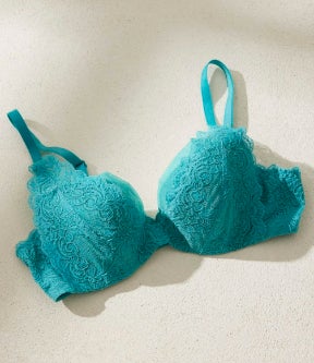 クラシカルな幾何調のレースをブラレット風にモダンに仕上げたデザインに、今シーズンは新色のグリーンとピンクが加わります。