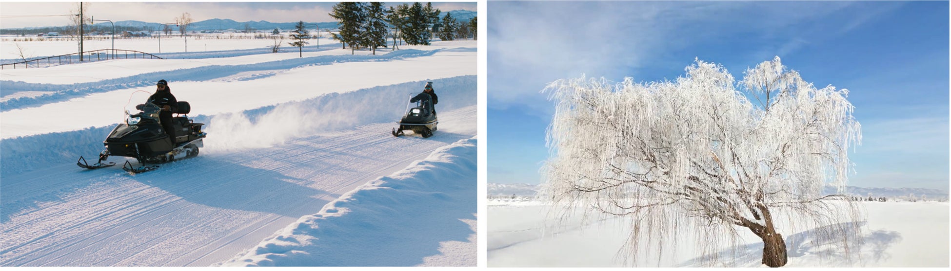 12/23~12/28の期間限定で、サンセットともにスタートするスノーモービルツーリングの特別プランを用意しています。LEDで幻想的に彩られたコースの滑走とスノーチューブ体験ができ、12/24~12/25はクリスマス限定花火ショーを開催します。夜空に咲く大輪の花火が雪景色をロマンチックに照らします(要事前予約)