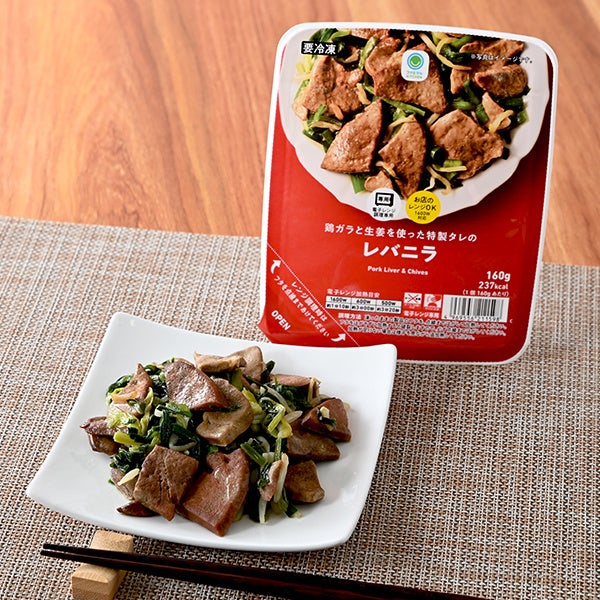 【内容】レバーとニラ、もやしに、オイスターの芳醇な香りと生姜の風味が効いた特製タレを合わせたレバニラ(冷凍食品)です。レバーは丁寧に下処理を行い、ボイルすることで、独特の臭みを軽減しています。